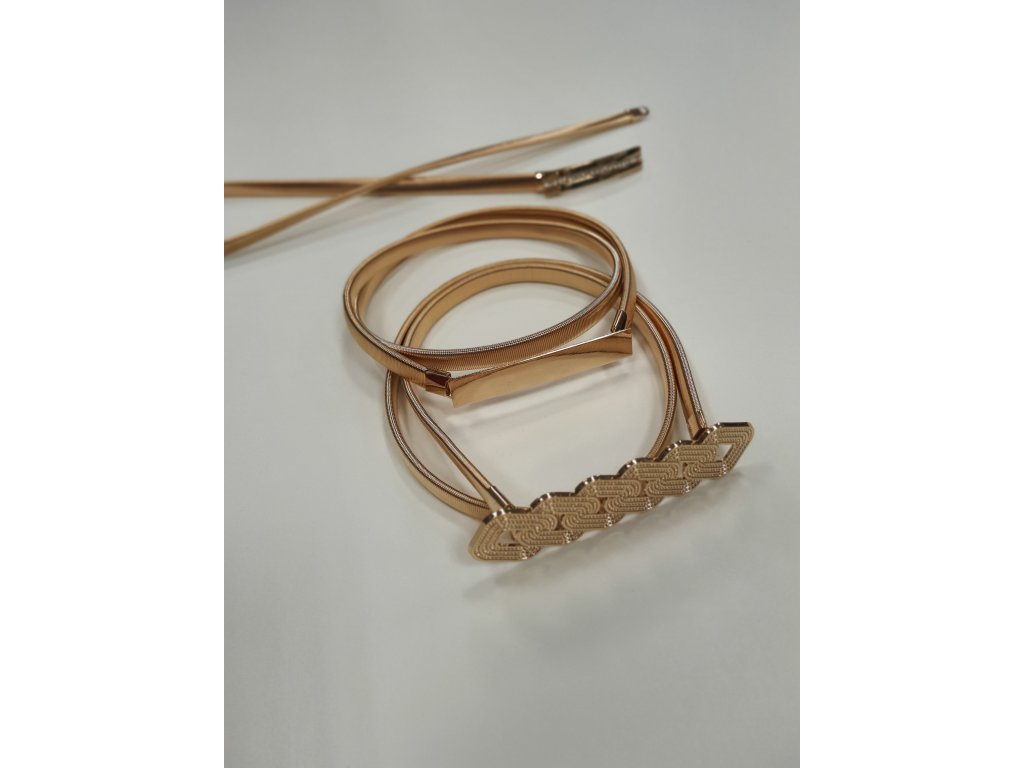 Jednoduchý pružinový pásek který se hodí k šatům ale i k sukni. Snadné zapínaní pomocí "zaháčknutí" pod přezkou.